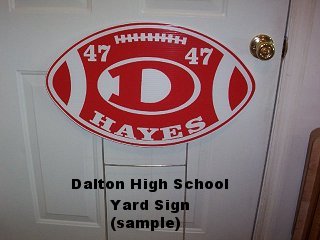 Hi Welcome to my little ad! If you need anything in the way of a sign to support the local teams, Dalton, Northwest, Southeast or Murray Co., please give me a call. I specialize in the little things that the "big" sign companies don't like to fool with. Football season is fast approaching and what a better way to display support for your team member with a custom made yard sign! I also make custom car tags, and window decals. Give me a call anytime. If no answer, please leave message.