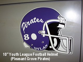 Since I have suspended my involvement in the mini helmet business, I have decided to use this page to display some of the things I offer for the area high schools and youth teams. Below are some pictures of magnets and yard signs that I have done. Some of the pics are just signs that I use, while others are actual signs and magnets. I didn't list any pricing on these because there is going to be a slight increase in the prices because my material cost has gone up. The magnets range in size from 11-1/2" X 6" on the footballs to 22" X 14" on the yard signs. The baseball magnets are roughly 8" in diameter and the basketballs are 8-1/2" in diameter. I can make magnets or yard signs out of most any school logo no matter what the color scheme is. If you are interested in ordering any of these items, where it be for a whole team or just one individual, contact me at 706-271-7861 anytime or Email me. Depending on the size of the order, turnaround is usually 1 to 2 weeks. **NOTICE** Orders received as late as 1 week before the season begins will be delayed. Get your order in early!!